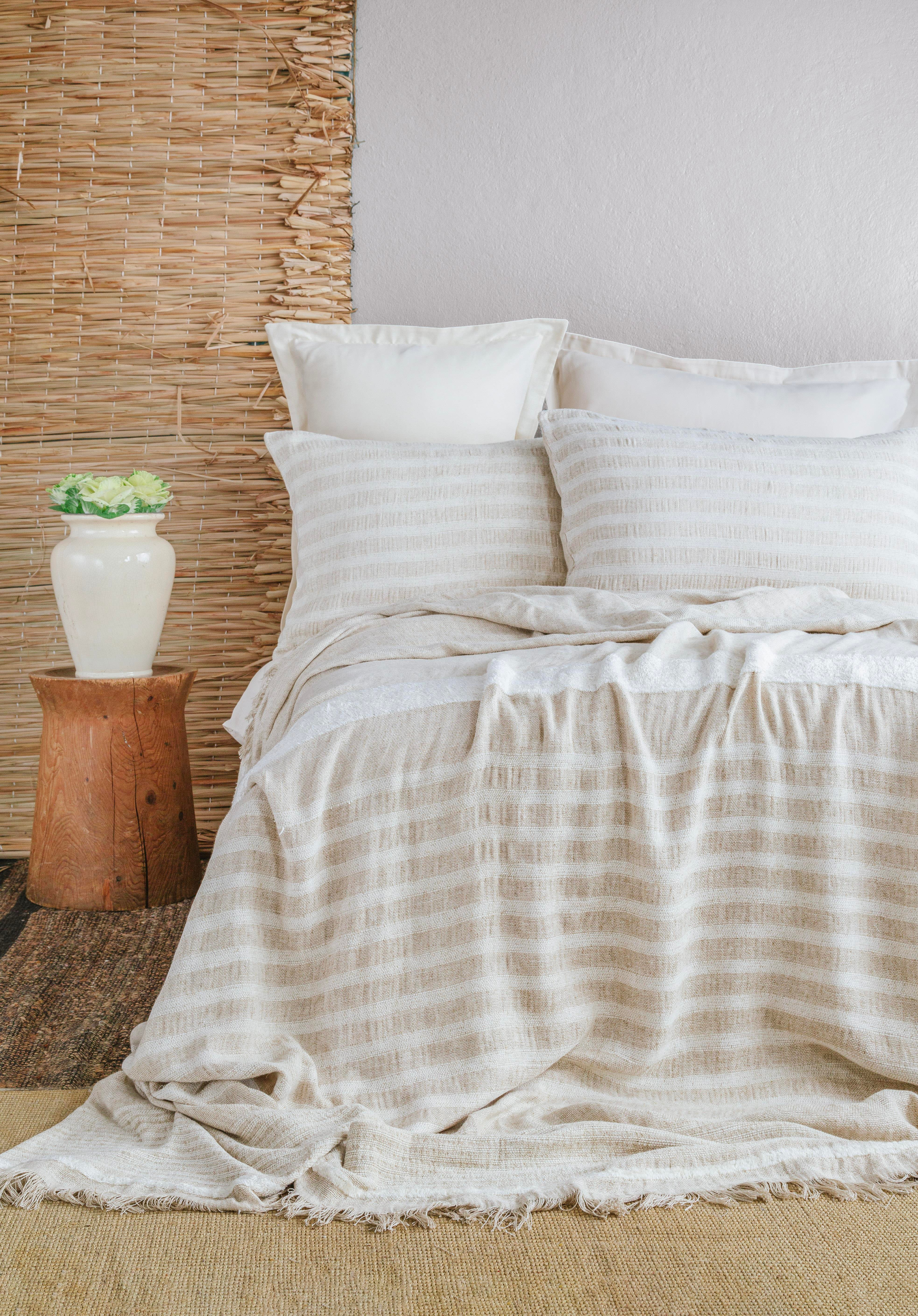ÇİFT KİŞİLİK KETEN YATAK ÖRTÜSÜ SET BRULEE WHITE - YATAK ORTUSU