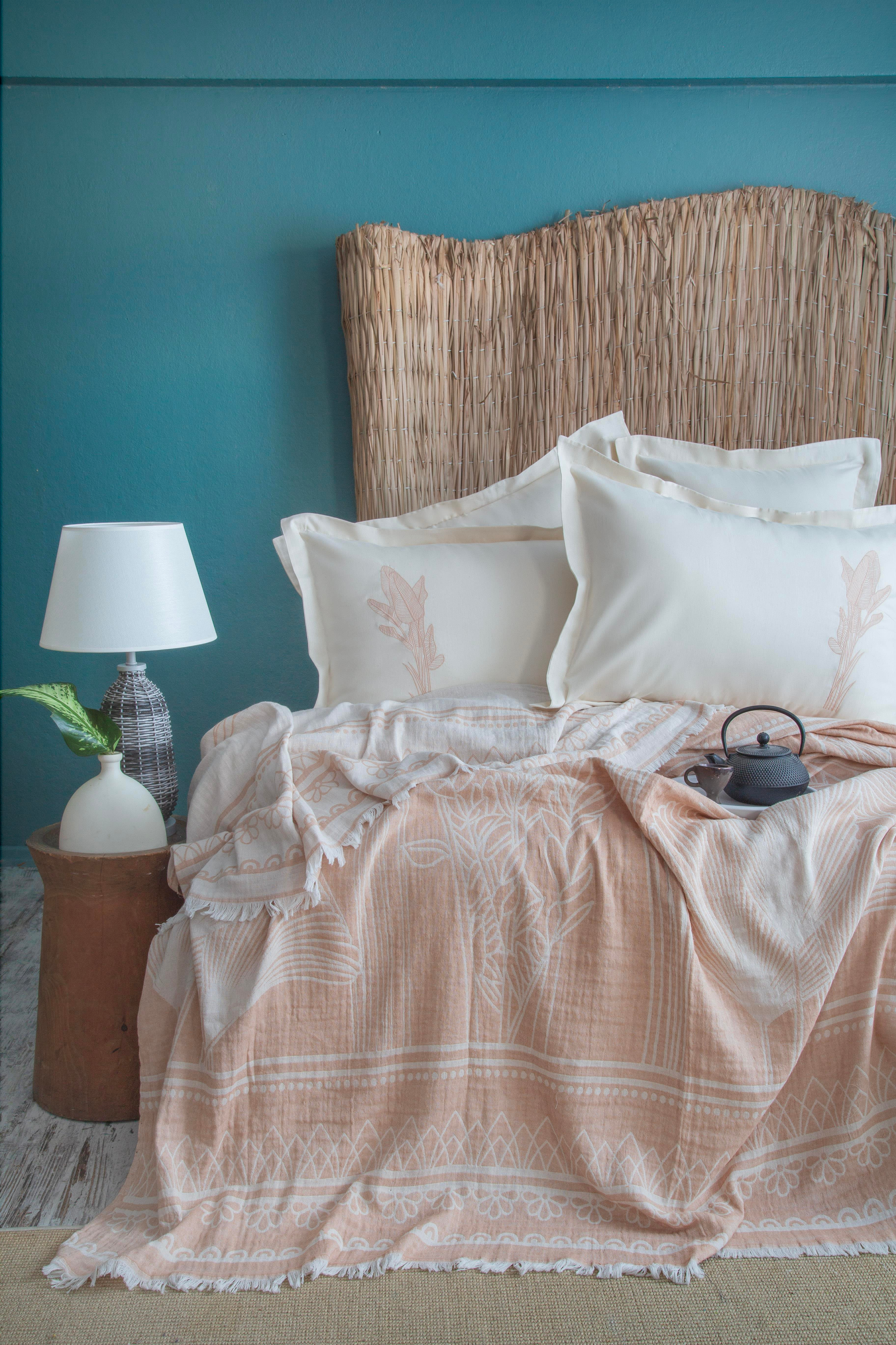 ÇİFT KİŞİLİK NAKIŞLI MUSLIN YATAK ÖRTÜSÜ SET TROPICA BLUSH - PIKE TAKIMI