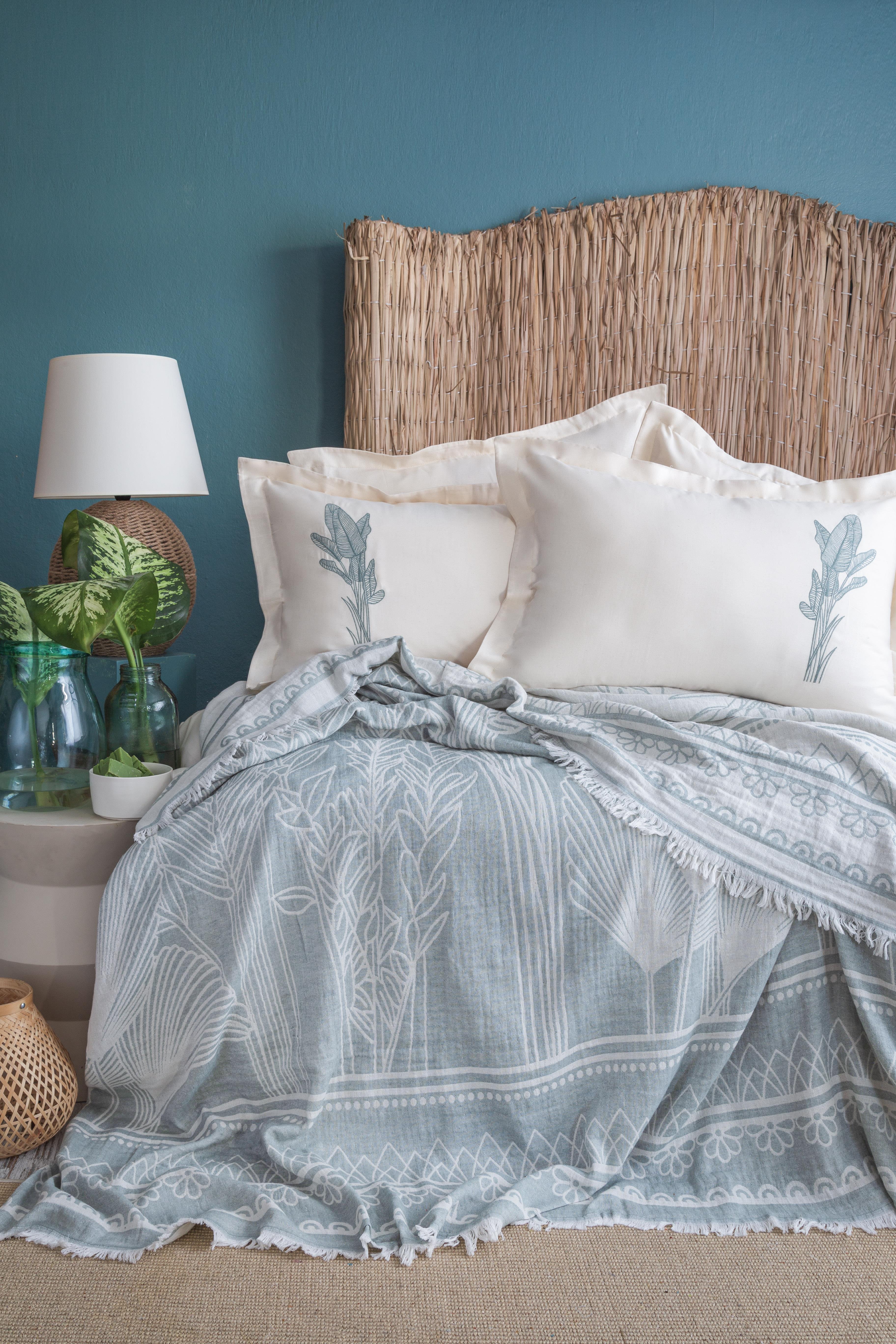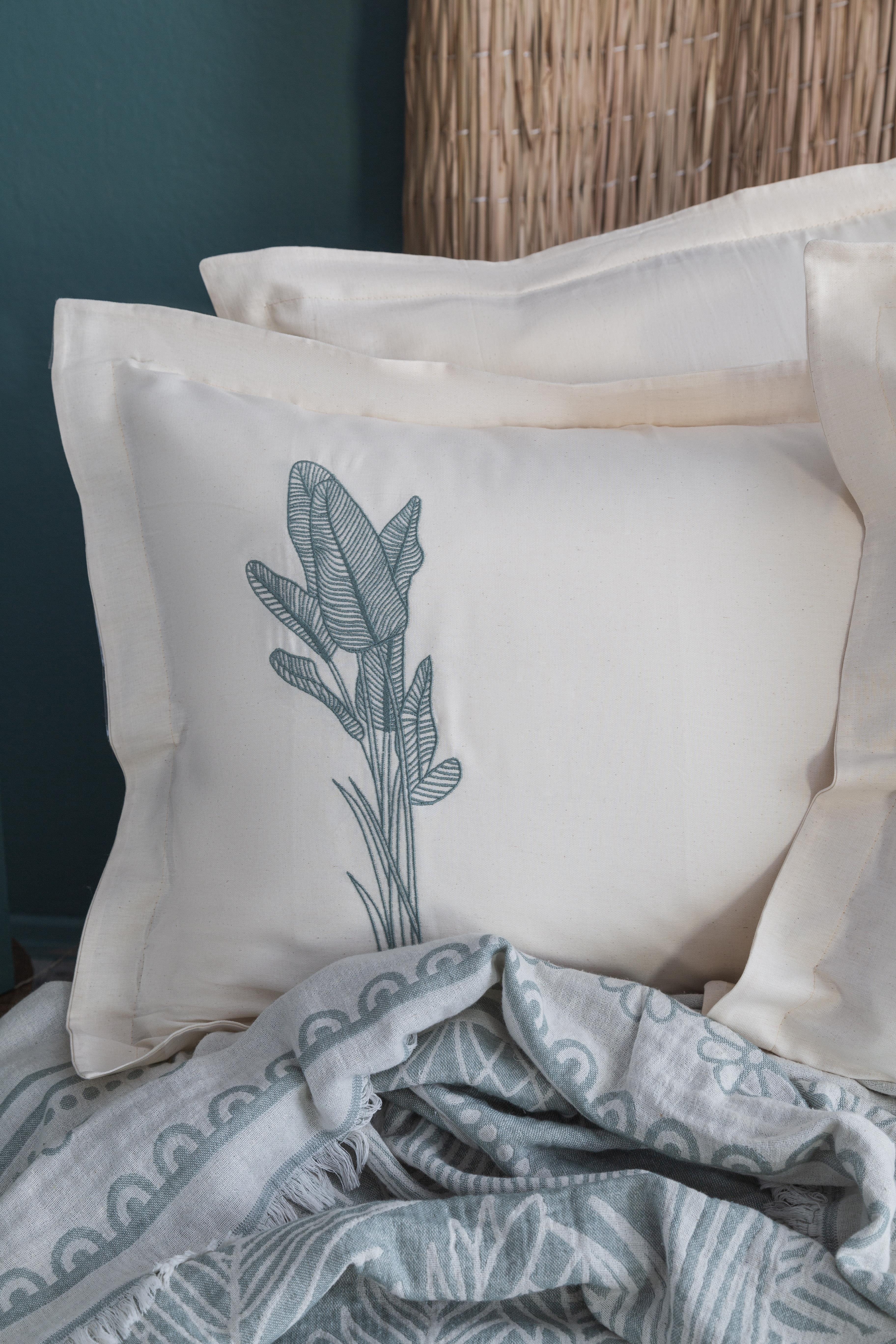 ÇİFT KİŞİLİK NAKIŞLI MUSLIN YATAK ÖRTÜSÜ SET TROPICA GREEN - PIKE TAKIMI