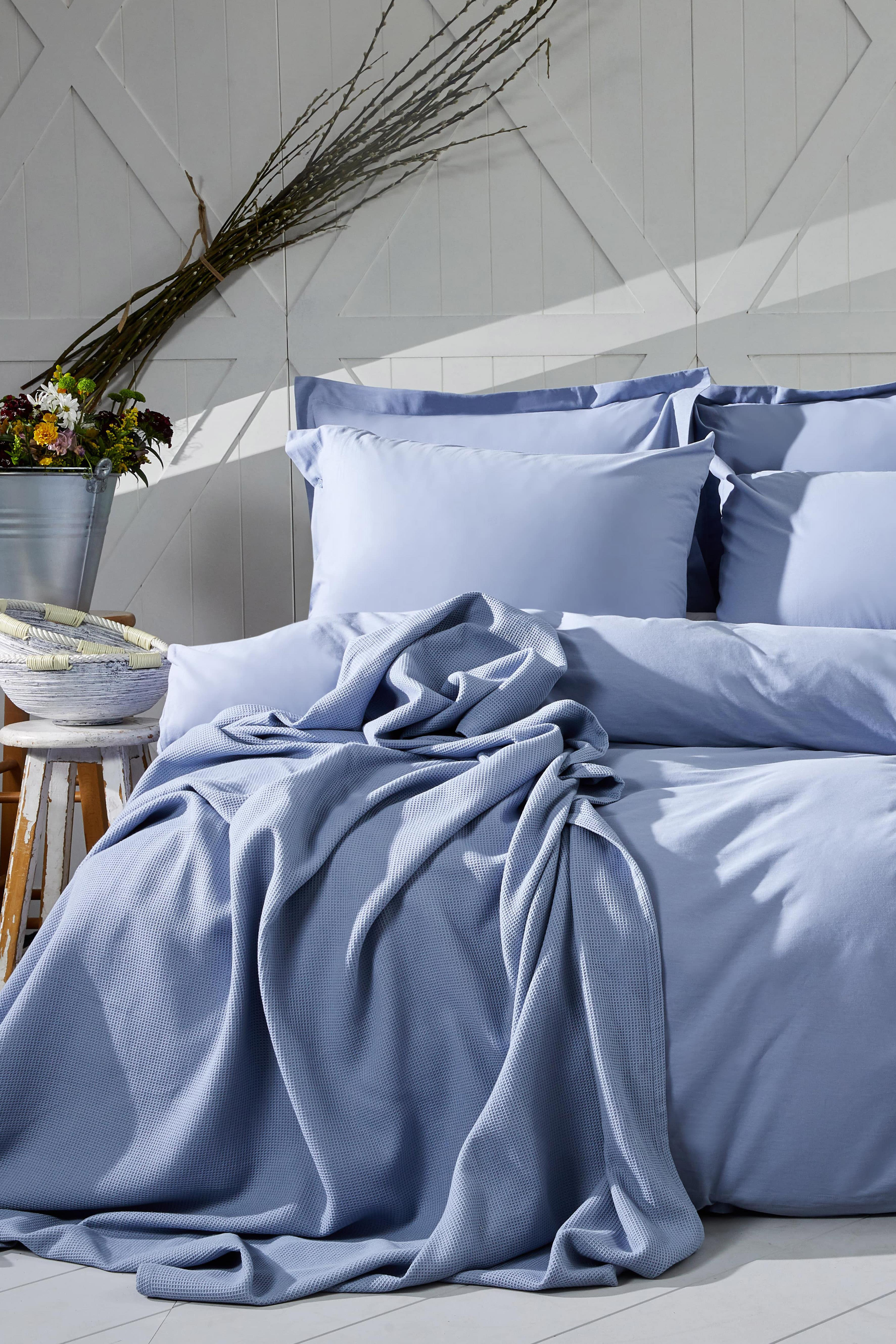 TEK KISILIK DUZ NEVRESIM TAKIMI ESSENTIAL MAVI  - NEVRESIM